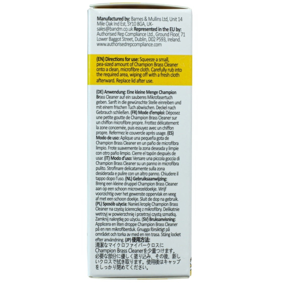 Squeeze a small, pea-sized amount of Champion Brass Cleaner onto a clean, microfibre cloth. Carefully rub into the required area, wiping with a fresh cloth afterward. You will soon see your instrument gleaming once more. Replace lid after use.