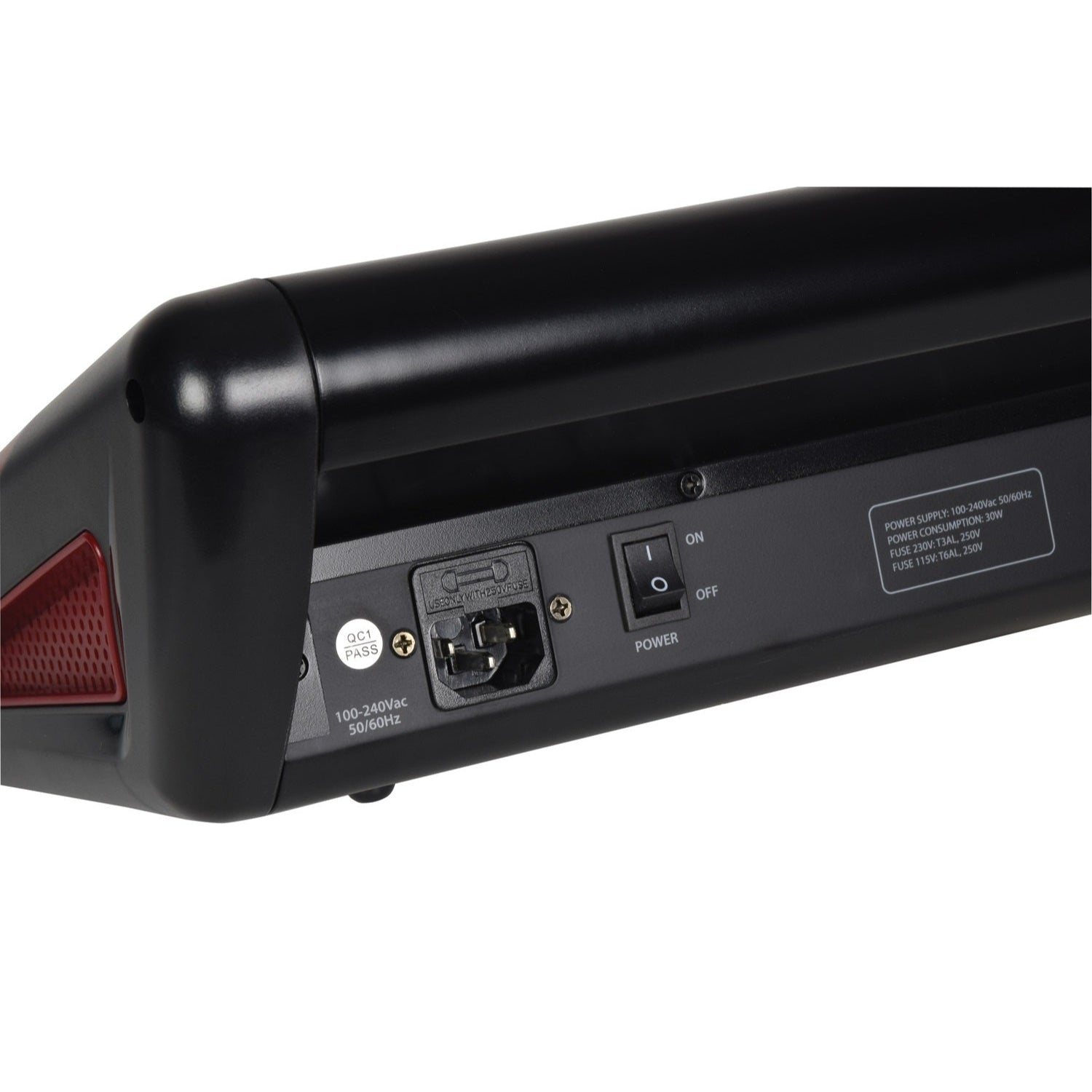 Phantom power is switchable to all XLR inputs for condenser microphones and active DI boxes.