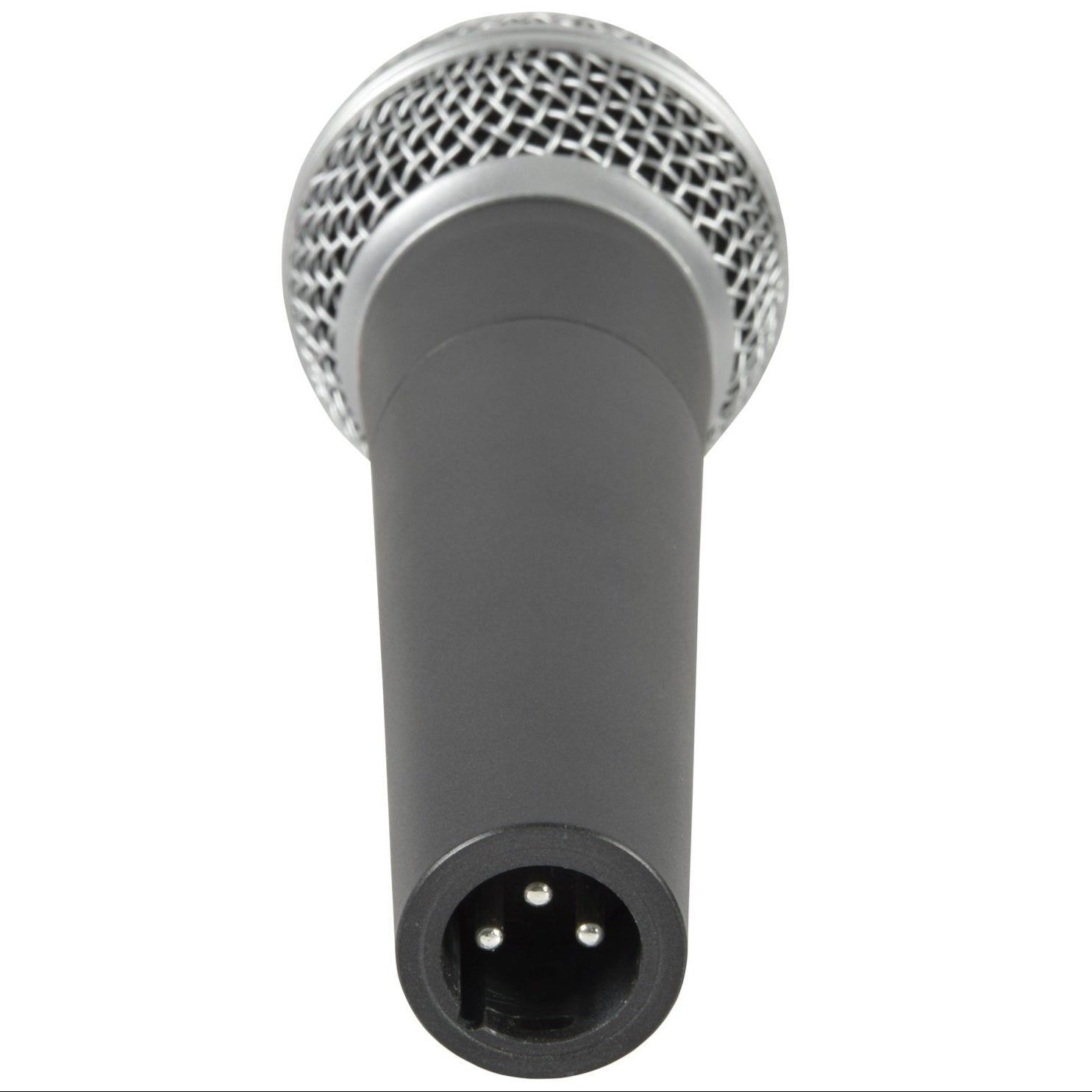 Professional handheld dynamic microphone for stage and studio use.