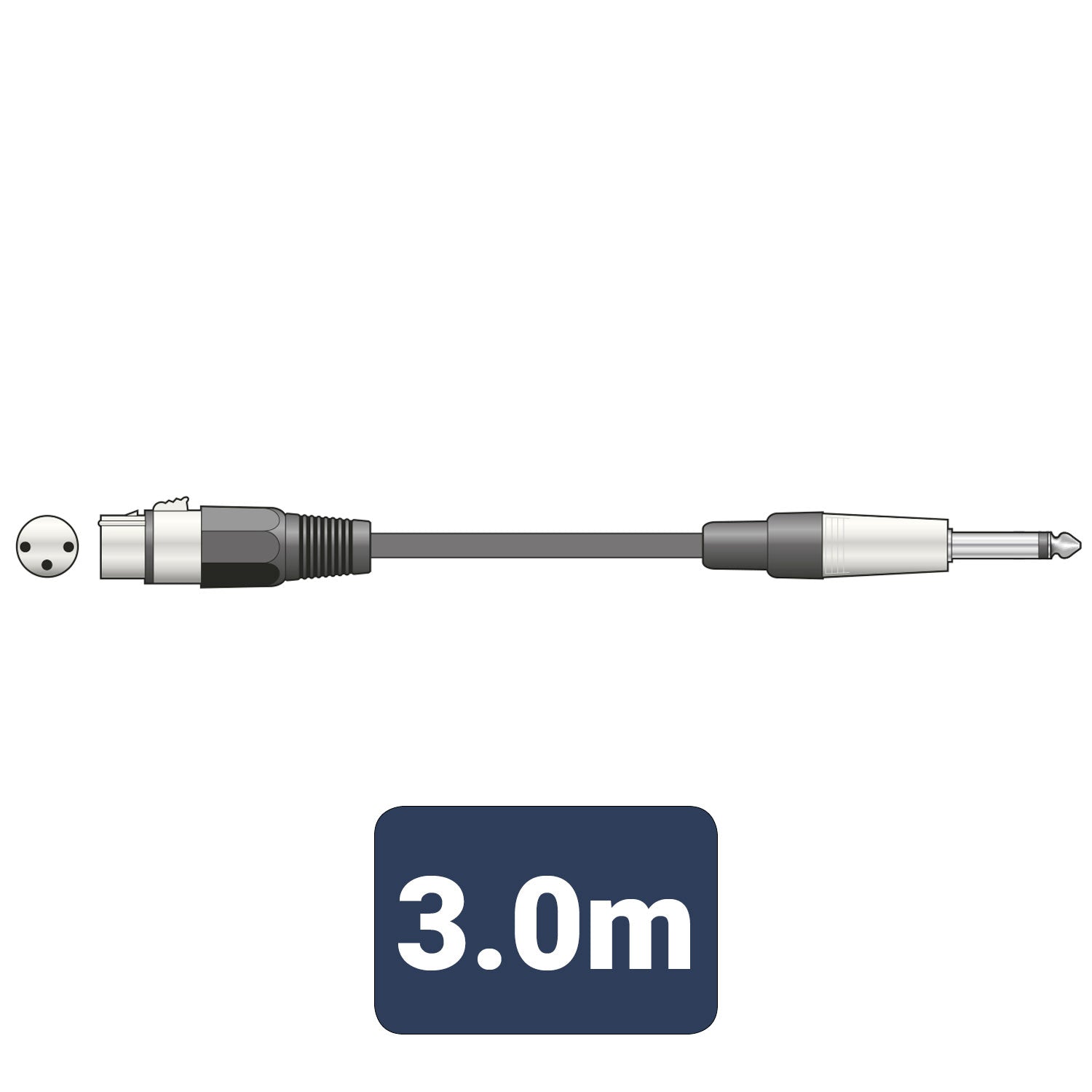 Microphone Lead XLR Female - 6.3mm Mono Jack Plug 3 m